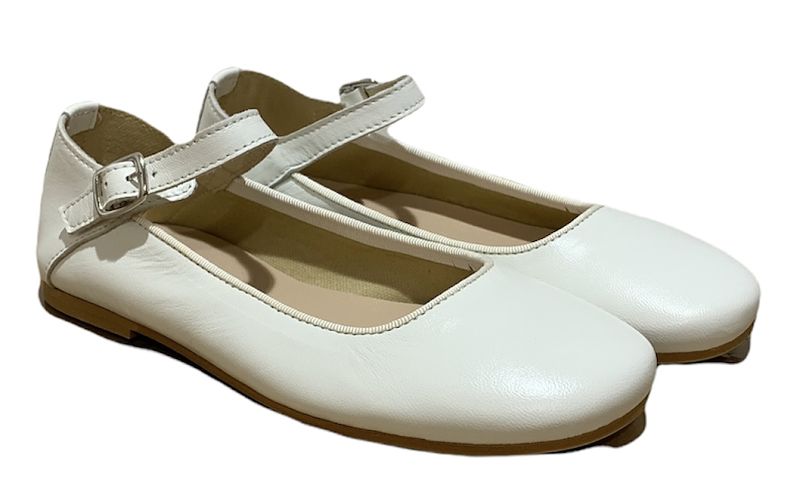 Mercedita en piel color nata con hebilla al tobillo.Forro textil y suela caramelo.100% Fabricación española.