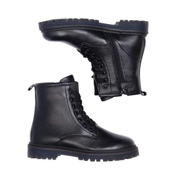 Botín de piel negro con cordones y cremallera. Talla 31 a 39.