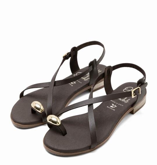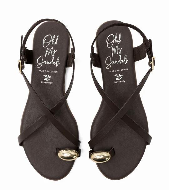 Sandalia de mujer con tacón bajo de 2.3 cm de color chocolate.